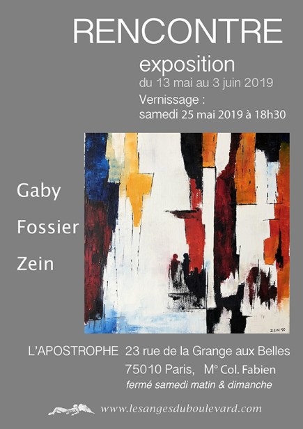Gaby Fossier Zein expose à l’Apostrophe vernissage le samedi 25 mai 2019 à 18h30