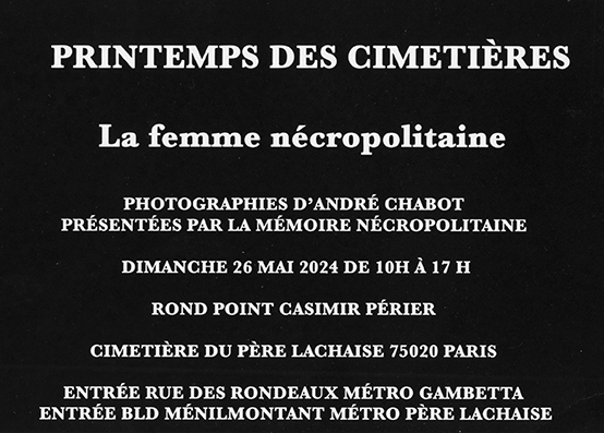 Catégorie : Uncategorized Étiquettes : andré chabot photgraphies, Andre chabot, la femme nécropolitaine, La mémoire nécropolitaine, printemps des cimetières